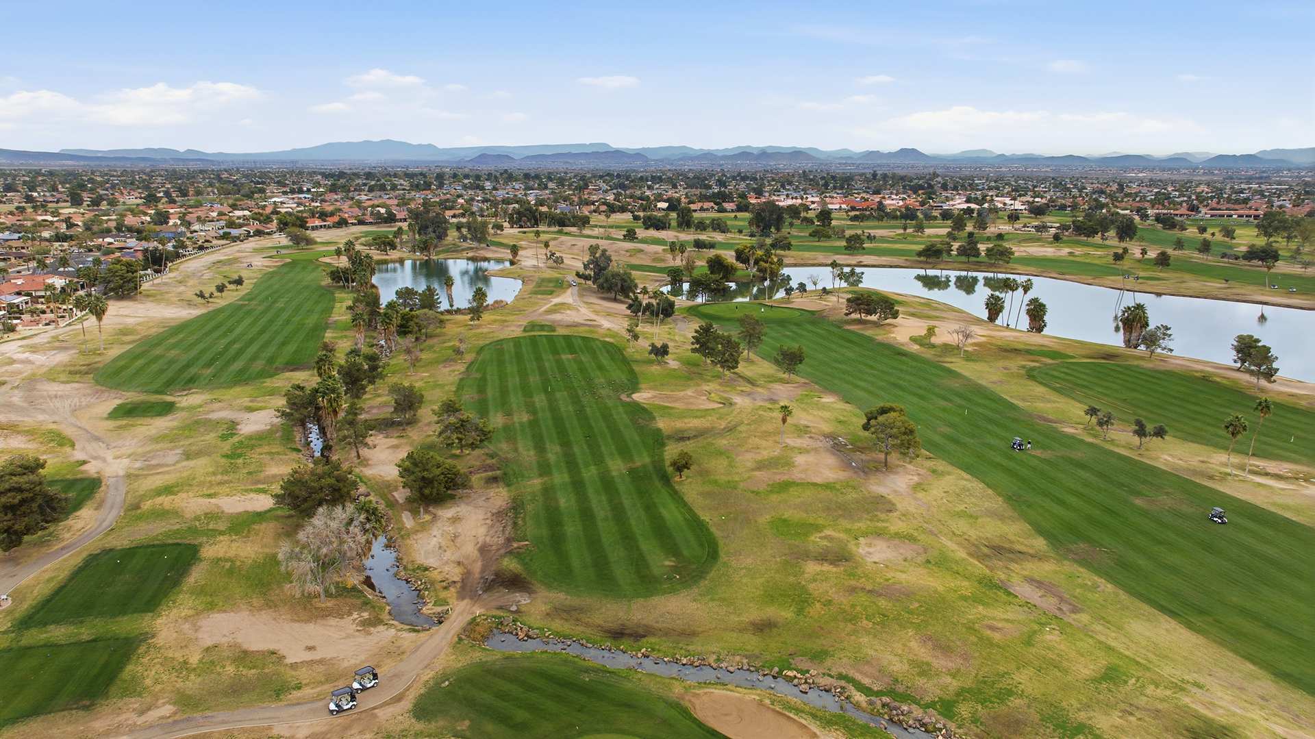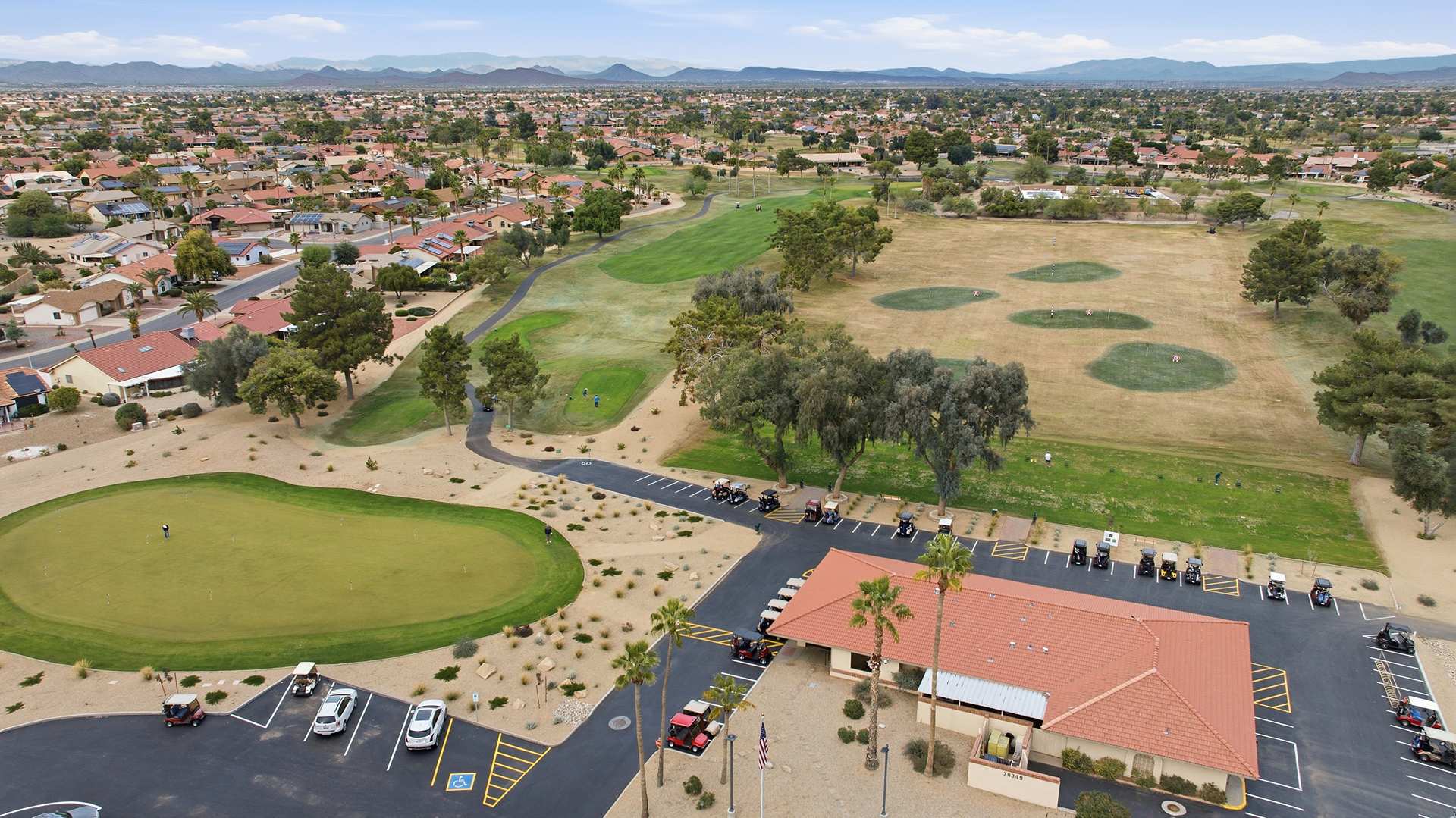 Grandview Golf Course is a premier 18-hole, par-72 championship course and the longest of the 7 golf courses. Known for its challenging yet enjoyable layout, the course features water hazards on seven holes, strategically placed bunkers, and beautifully manicured fairways set against a desert-landscaped backdrop. Amenities include the full-service restaurant The Crooked Putter, along with an on-site Golf Lab providing professional instruction, custom club fitting, and expert club repair.