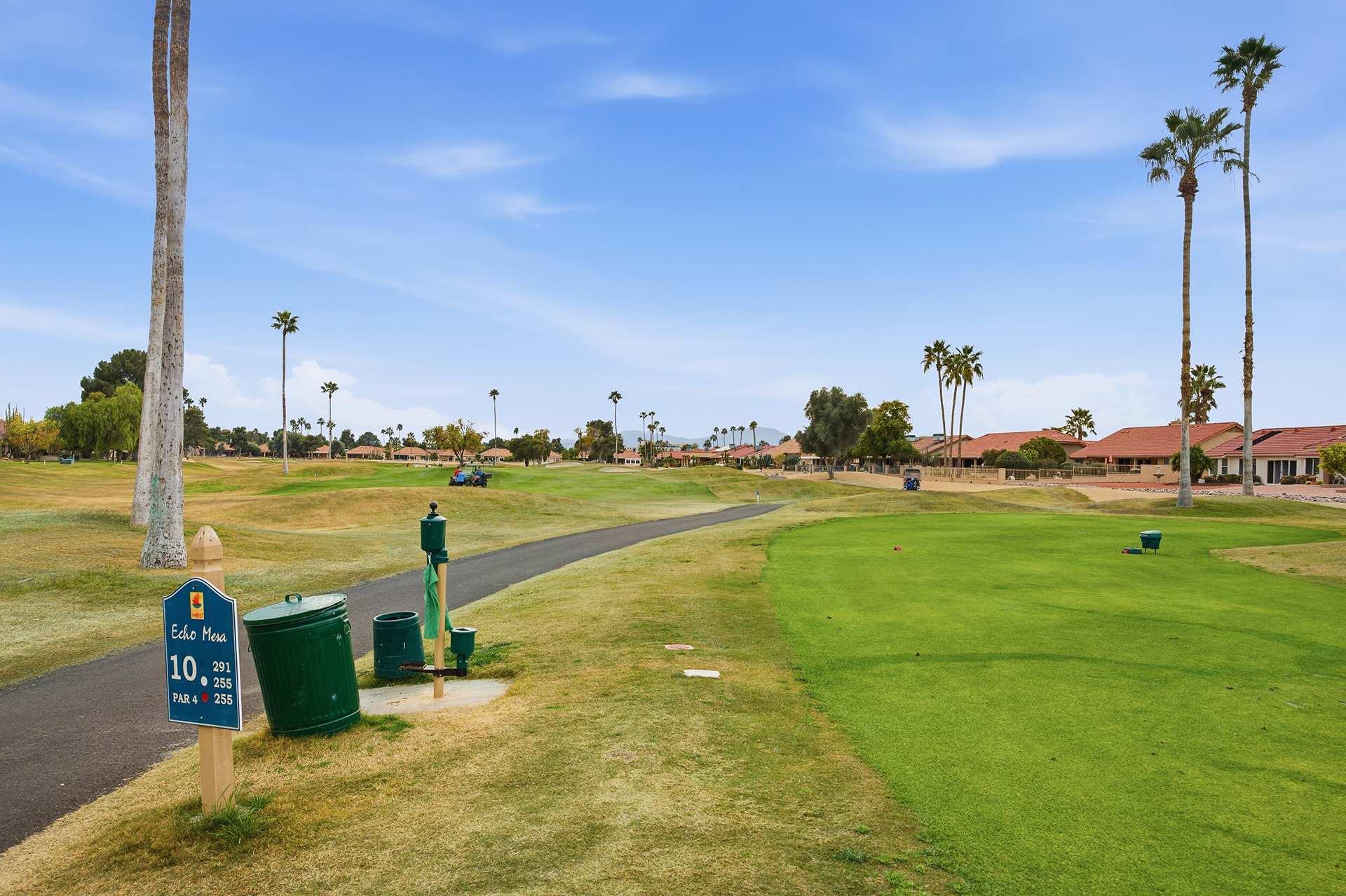 Echo Mesa Golf Course is a scenic and surprisingly challenging executive‑style course in Sun City West, known for its lakes, sand and grass bunkers that keep every round interesting. The layout plays at par 60 from the blue tees with multiple tee options, and includes a pro shop where golfers can relax with a snack or beverage after play — perfect for a fun, quick round with friends or neighbors.